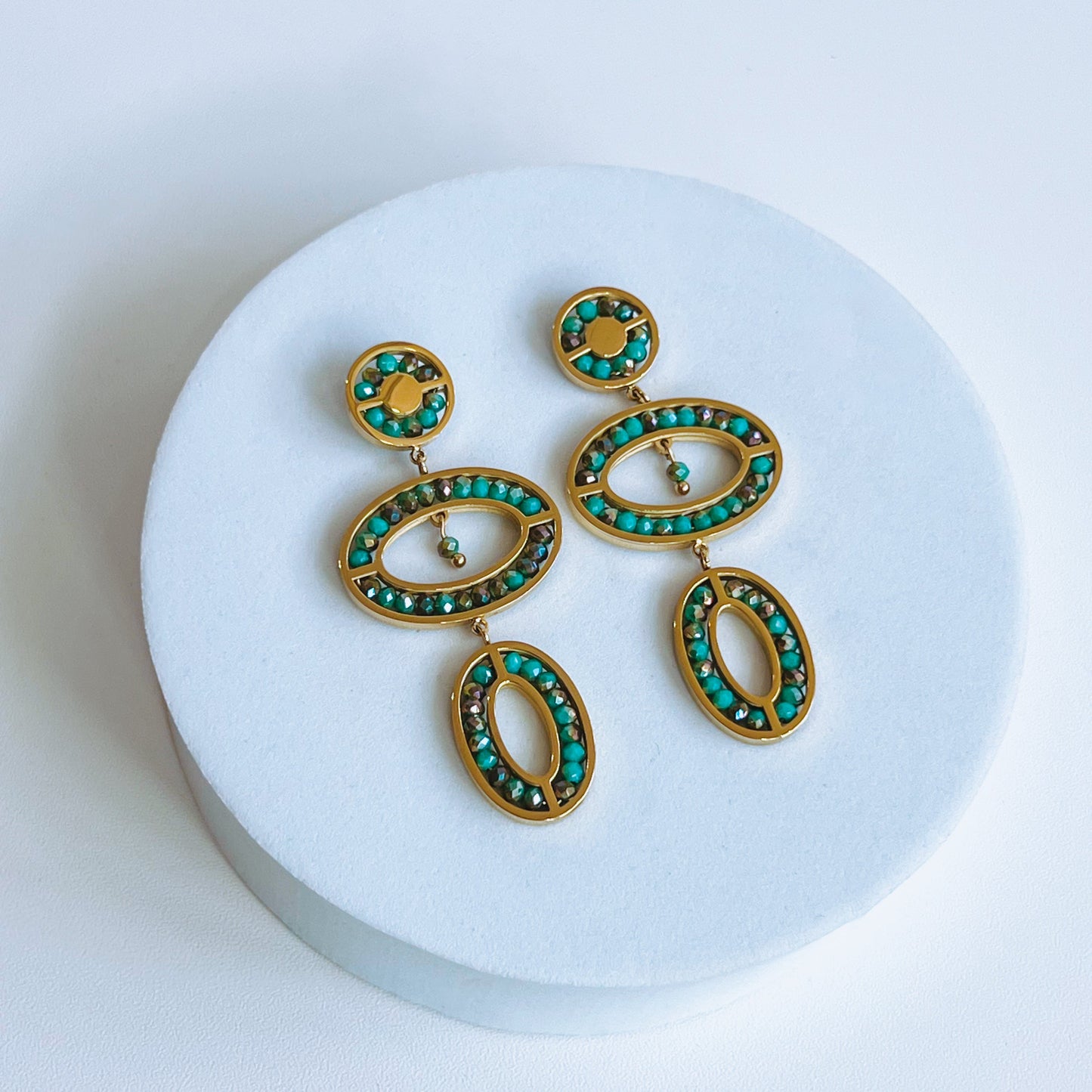 Dive into coastal elegance with these stunning Abaco Earrings in shimmering aquamarine.