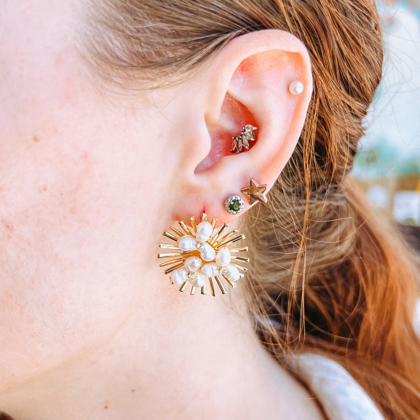 Add Sunburst Pearl Statement Studs to the cart