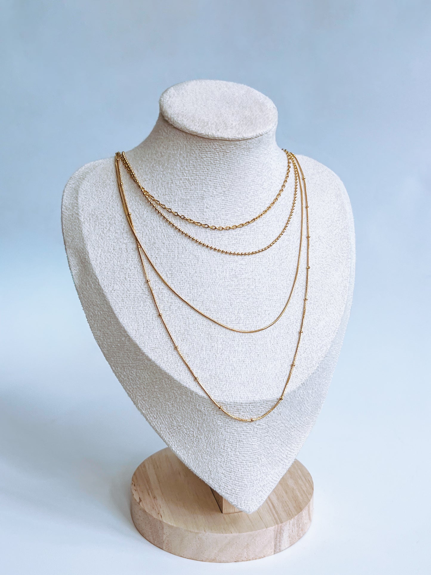 Elevate your everyday look with this stunning four-layer gold strand necklace that strikes the perfect balance between understated elegance and bold statement.